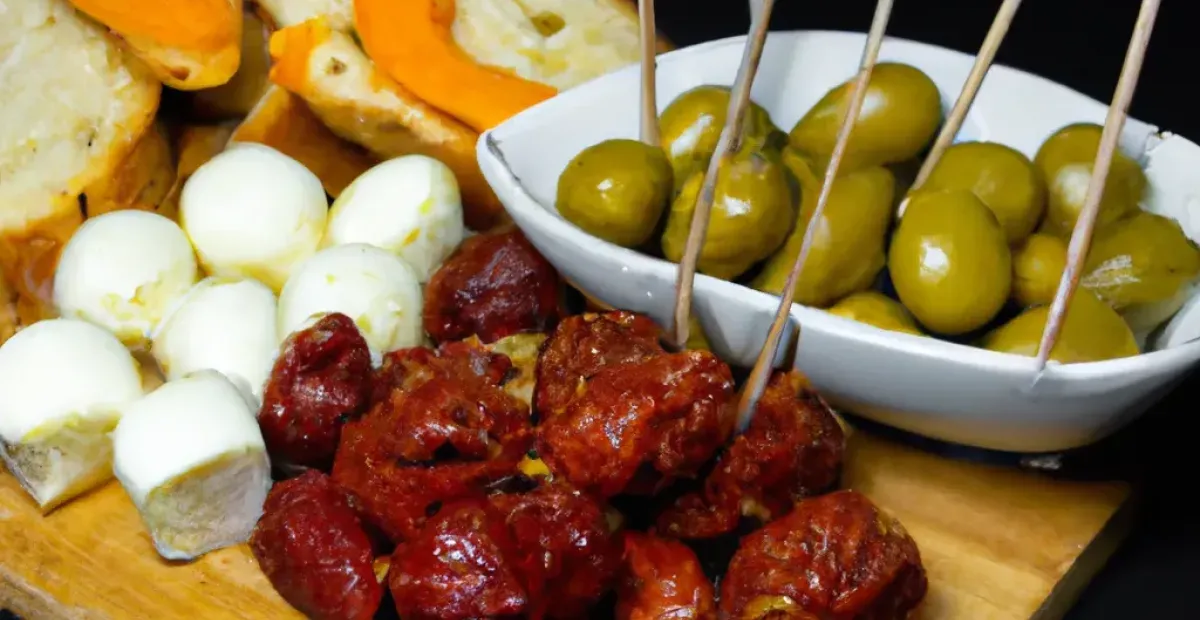 Snacks con Aceitunas y Jamón Serrano