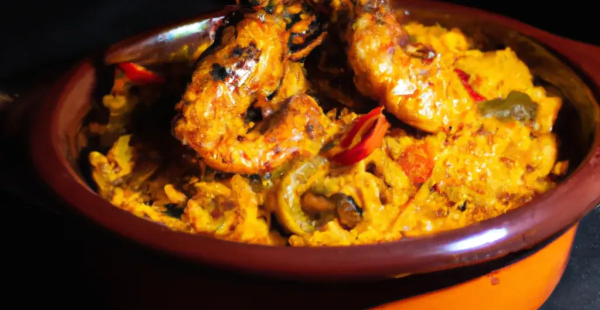 Cazuela de gambas y carne